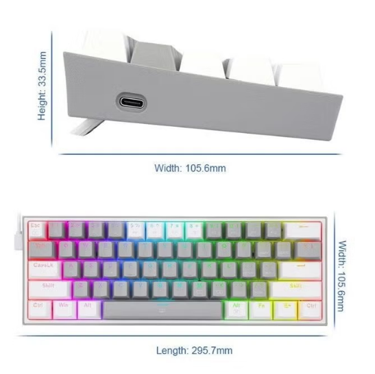 60% Mechanical Keyboard, Red Key Switches, Hot-Swappable, Detachable Type-C Cable, Pro Software Customizable RGB, Full Rollover 61-Keys, White/Gray | K617-RGB