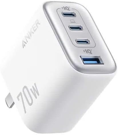70W Charger 4-Port A121C Fast charger Gan Technology and Compact for MacBook, iPad, iPhone 17/iPhone Series, Galaxy S26/S25 (White)
