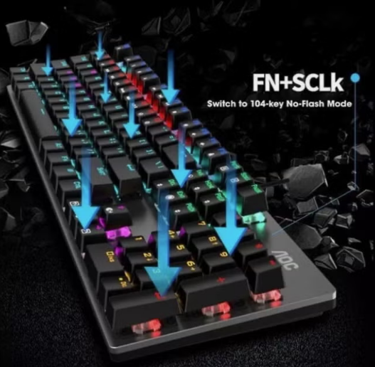 AOC GK410 RGB Mechanical Keyboard - 104 Keys, Durable Metal Panel, Stunning RGB
