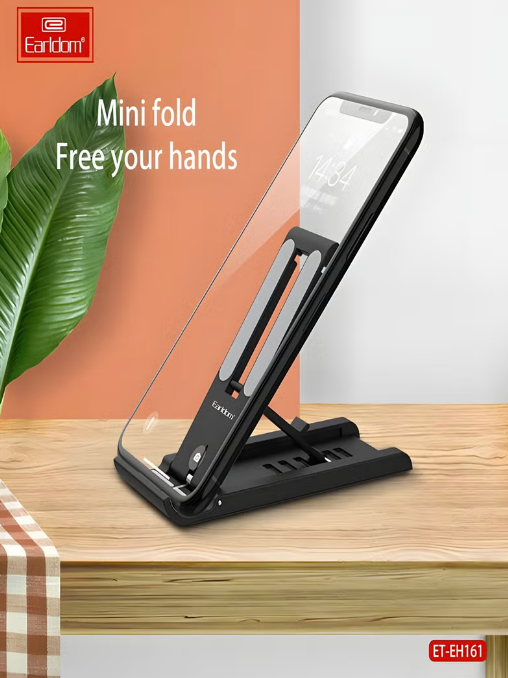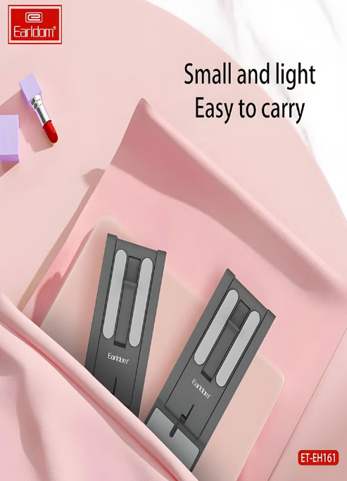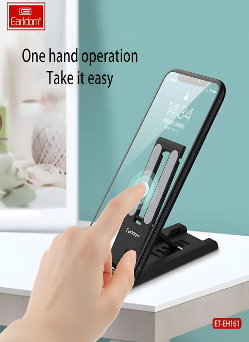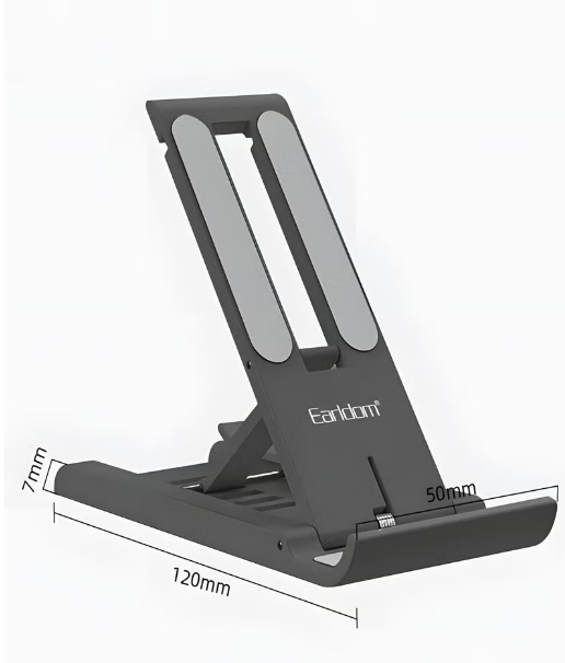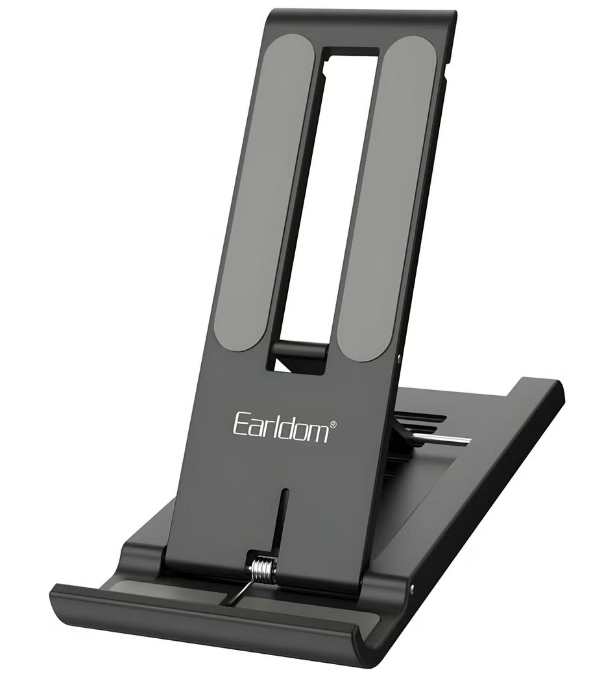 Earldom ET-EH161 Desktop Adjustable Aluminum Alloy Premium Smartphone Stand. Crafted from premium aluminum alloy, this sleek stand offers exceptional stability and durability. Its foldable design allows for easy storage and portability, making it ideal for both home and office use. Adjustable height and angle provide optimal viewing angles, ensuring comfort and eye protection while streaming, gaming, video calls, or conducting work.