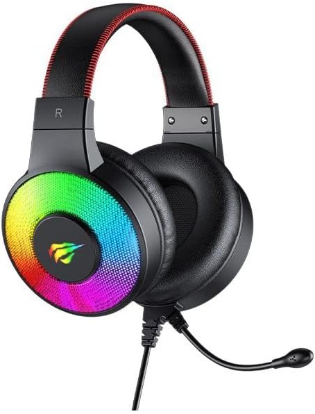 سماعة فوق الأذن سلكي العاب H2013D مع ستيريو محيطي 50 ملم واضاءة RGB رائعة من هافيت، اسود