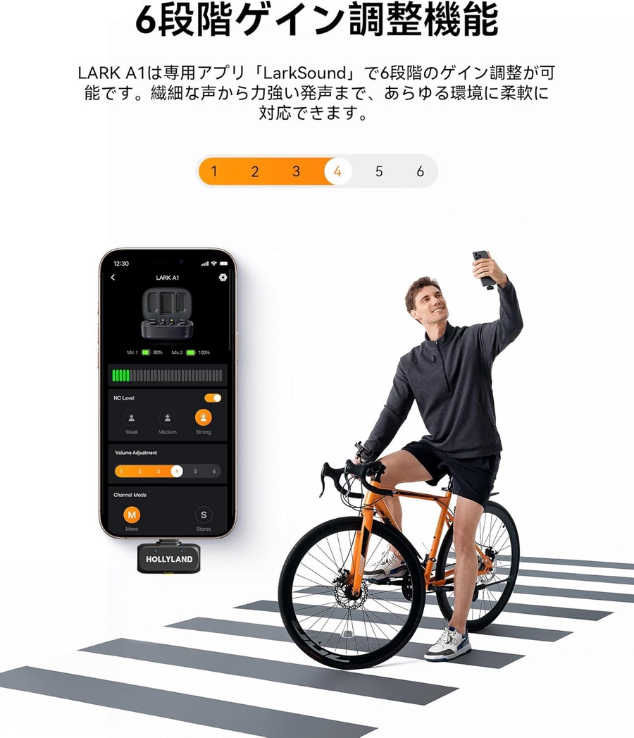 Tailor your audio with ease using the LarkSound app. Fine-tune your microphone sensitivity across six gain levels to suit any scenario-from soft whispers to booming vocals.