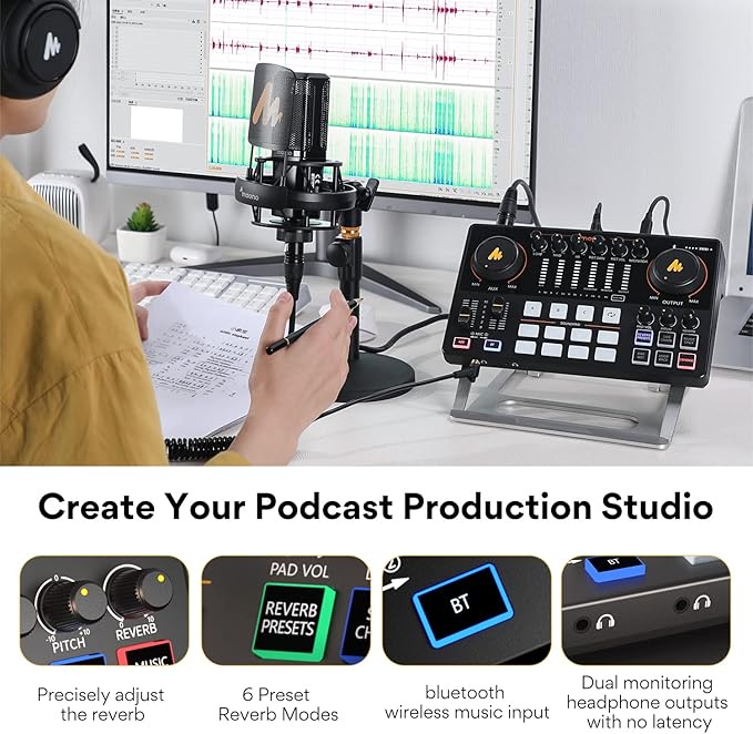 واجهة الصوت المطورة قادرة على إنشاء اتجاه جديد للبودكاست مع استخدام التوصيل والتشغيل وتسجيل صوتي واضح للغاية وتصميم عصري، مما يجعل استوديوهات منزلك إلى مستوى احترافي. مثالي لتسجيل البودكاست والبث الصوتي وإنشاء المحتوى. متوافق مع الكمبيوتر الشخصي والموبايل الذكي والتابلت والكاميرا وويندوز وماك او اس وما إلى ذلك.