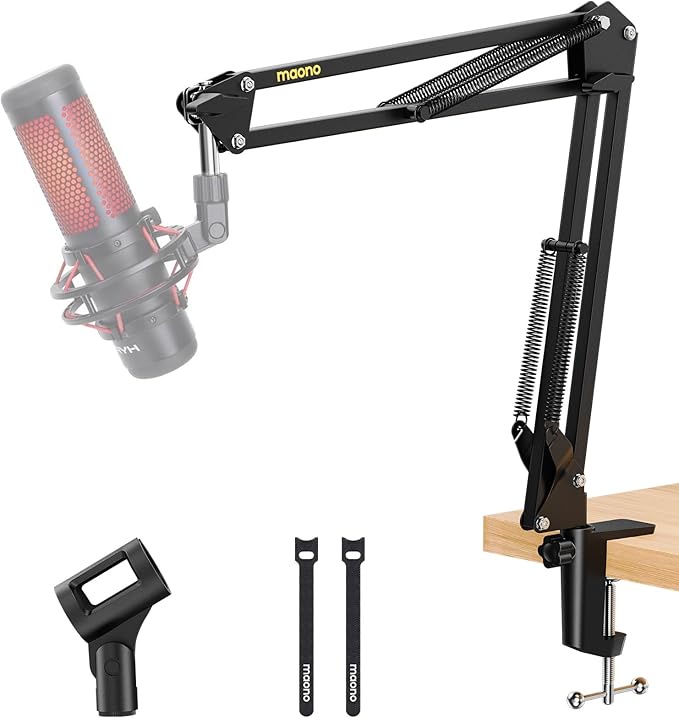BA20 ، يتحمل حتى 1 كجم، معدن بقاعدة تثبيت على المكتب، مزود بمحور تحويل 3/8 بوصة إلى 5/8 بوصة، متوافق مع Maono A04 وDGM20 وPD100X وغيرها من الميكروفونات – أسود