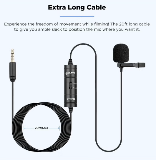 Boya By-M1 Lavalier Microphone With Foam Windscreen For Smartphones And Cameras - black