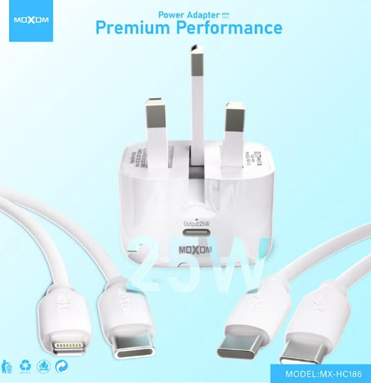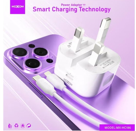 MOXOM MX-HC186 USB-C Fast Charger (UK) 25W Super Fast Power Charger with PD Connector for iPhone