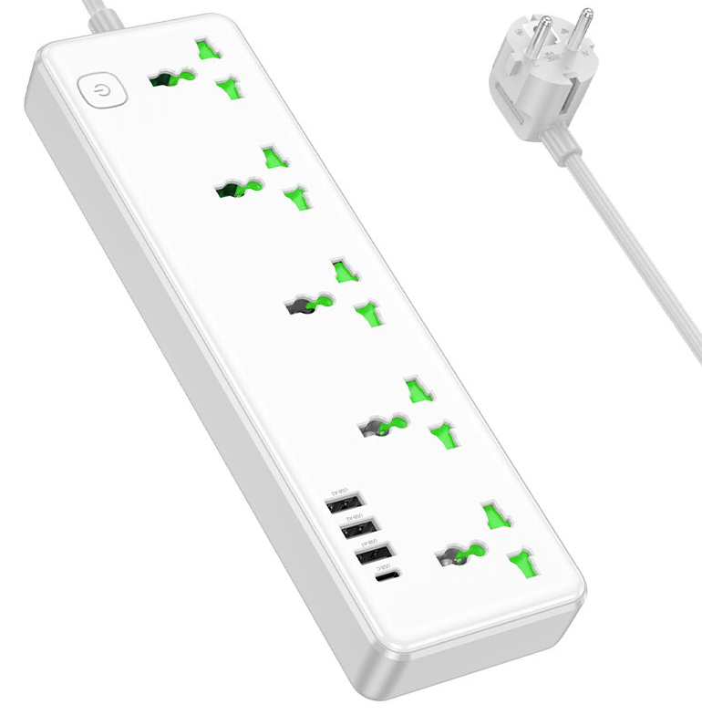 AC13A Talento, 2500W power strip with 5 × AC sockets, single Type-C and 3 × USB-A outputs, EU plug, 1.5m cable