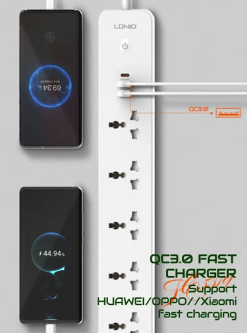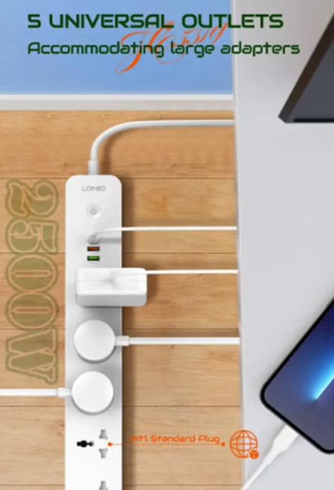 High Capacity Capacity: The LDNIO SC5319 power plug offers high capacity It has a high output of 2500 watts, making it suitable for a wide range of electronics and home appliances, and ensuring there are enough outlets for your needs.