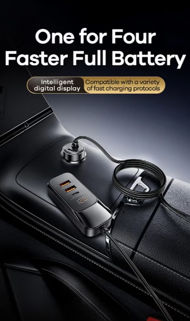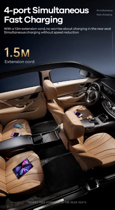 Four charging ports (2 USB + 2 Type-C) supporting PD and QC for multiple fast charging options.