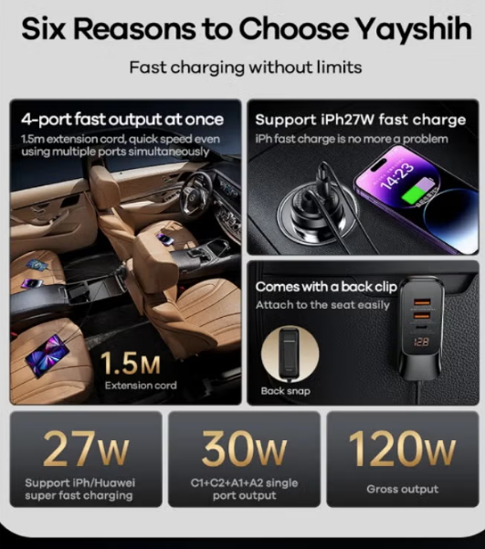 Powerful charging up to 120W for fast charging and powering of devices.