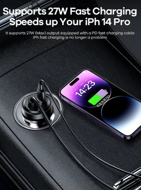 Compatible with all 12V/24V vehicles and most smart devices such as phones, tablets, and laptops.