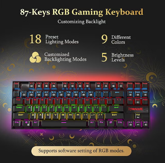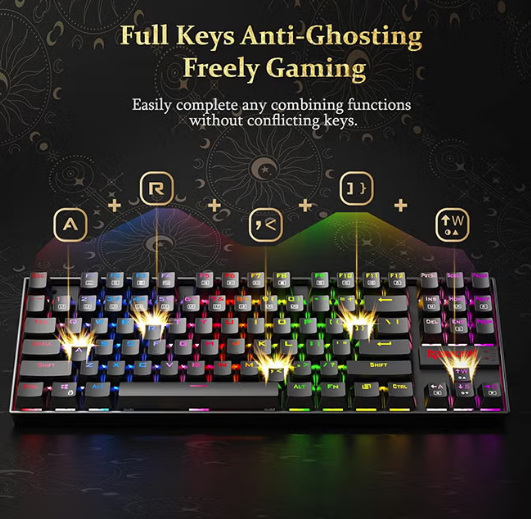 87 mechanical gaming keyboards keys are conflict free (n-Key Rollover) for ultimate Gaming performance