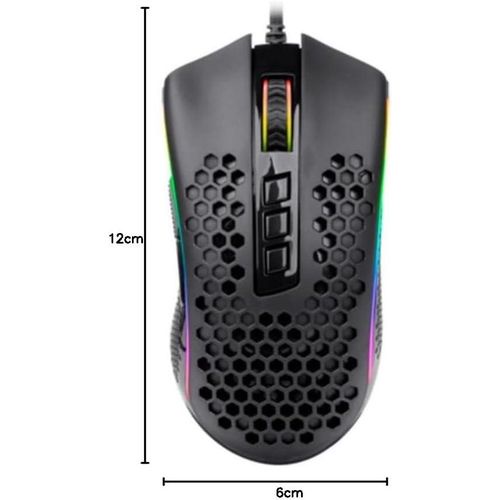 Years-Tested Ultralight -85g, the lightest mouse of Redragon with over the years using preference testing that fits perfectly for any hands and any tasks. A single click or swipe, totally in your control. Aesthetics of Hive - The cutout honeycomb shell covered with comfy frosted finish gets you the ambidextrous buff, offers unlimited possibilities and infinite potential to maximize your aim. No-Drag Weave Cable - Not only the material and design of the mouse itself, but also the cable is made of the lightest material to kill the weight and the friction as much as possible. 7 Programmable Buttons - All buttons are availble for redefinition and assignment of complex macro keybindings, easy to deal with any impossible mission. Sets Your DPI/RGB - 100 to 12400 DPI and 16.8 Million colors are all customizable with software support(download link), engineer your liked way to win. Ultra Lightweight Design At 85g, more friendly to low-DPI arm genre gamer. Allows wider movement, smoother swipes, faster react speed in game. 5 Customizable DPI Levels With advanced gaming driver, 5 on-board DPI levels are all editable to +/- 100 between 100-12400. Easy to set and swift among your DPI settings for different cases. Hive Designed & Ergonomic Shape Stylish cutout honeycomb shell design with a comfortable grip frame, greatly reducing the fatigue caused by prolonged use.