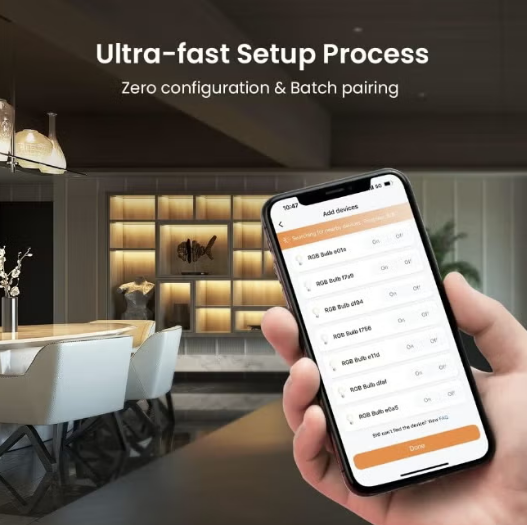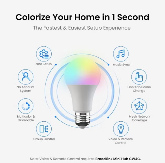 No setup required: download the new app - BroadLink BLE - leave the ble on, turn on the devices and wait for them to be detected in the app. Up to 90 devices can be added simultaneously in 1 second. No need to create an account. Quick and easy to use with no privacy concerns. Supported by exclusive BroadLink technologies: FastCon BLE.