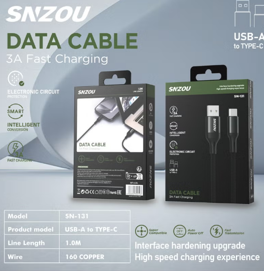 Snzou Smart Charge 3A USB-A to Type-C Cable 1M sn-131 fast charging