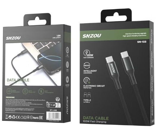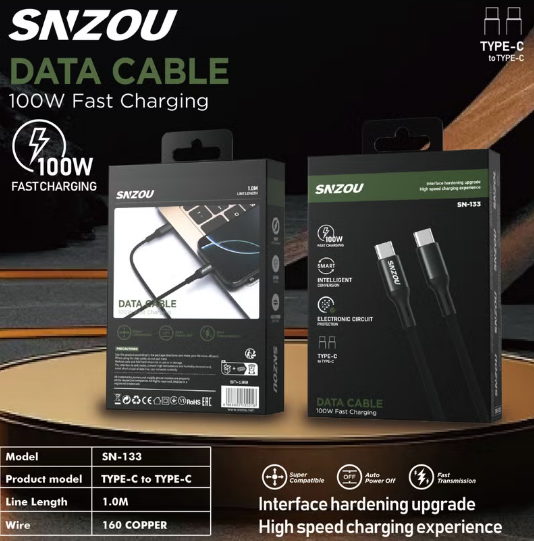 The SN-133 Data Cable is engineered for high-performance charging with 100W power delivery. Its intelligent power management and circuit protection ensure safe and stable charging.