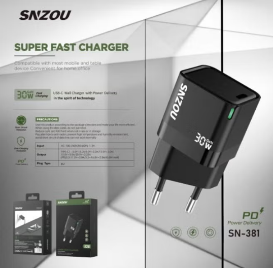 Connector Type: USB-CCompatibility: Supports multiple devicesCertificate: CE, RoHS, EAC30wfast charging (GAN)