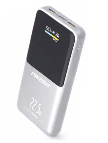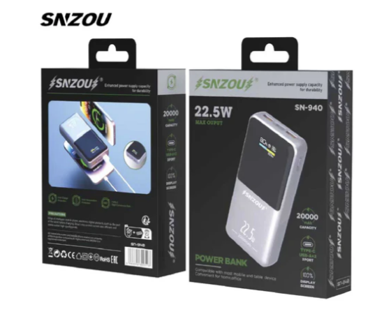 SNZOU شاحن متنقل 22.5 واط بثلاثة منافذ (منفذ Type-C ومنفذان USB-A) بسعة 20000 مللي أمبير - رمادي