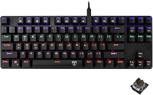 كيبورد ميكانيكي للالعاب بورا TGK313 من تي-داجر - اضاءة LED بالوان قوس قزح - مفاتيح قابلة للتبديل السريع (مفتاح بني)، USB