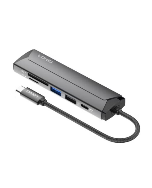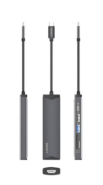 Features 5-in-1 functionality: Expand your device’s connectivity with 5 ports, including 1x USB-C PD port, 1x HDMI port, 3x USB-A 3.0 ports, and 1x SD/TF card reader. Powerful PD charging: Charge your compatible devices at lightning-fast speeds with up to 100W power delivery (PD) through the USB-C port. 4K HDMI output: Connect to an external monitor or TV and enjoy stunning visuals with 4K resolution at 30Hz. High-speed data transfer: Transfer files quickly and efficiently with the USB-A 3.0 ports, supporting data transfer speeds of up to 5Gbps. SD/TF card reader: Easily access and transfer files from your SD or TF memory cards. Compact and portable design: The sleek and portable design makes it easy to take with you wherever you go. Plug-and-play compatibility: Simply connect the docking station to your USB-C device to start using its expanded ports. Premium build quality: Constructed with high-quality materials for durability and reliability. Product Description The LDNIO DS-56H PD100W 5 In 1 USB-C Multi-function Docking Station is a versatile and powerful solution for expanding the connectivity of your USB-C laptop or tablet. With its compact and portable design, this docking station offers a variety of ports and functions to enhance your productivity and streamline your workflow. Specs Brand Name: LDNIO Model Number: DS-56H Material: Aluminum alloy Product name: 5 In 1 expansion Dock Hub Application: Mobile Devices, desk Computer Function: PD100W USB-C Multi-function Docking Station USB Type: USB 3.0 Type-c Multiport USB-C: Support PD3.0 protocol, maximum power 100W Support system Compatibility: WIN7/WIN8/WIN10/IOS/Other Devices Type: Type-c USB 3.0