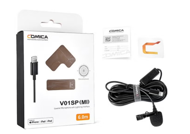 Comica Audio CVM-V01SP(MI) Clip-On Lav Mic with Lightning Connector Omnidirectional Pickup Pattern 19.7′ Cable