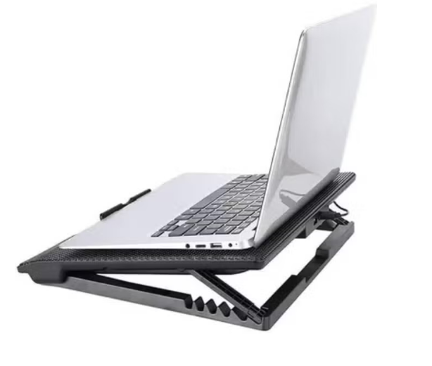 Keep your laptop cool and performing at its best with this versatile cooling pad. Equipped with a built-in fan and LED lighting, it provides effective airflow to prevent overheating for laptops and MacBooks from 9" to 17". The dual USB ports allow easy connectivity for your devices while keeping your workspace organized. Lightweight, portable, and stylish in black, it’s perfect for gaming, work, or long study sessions.