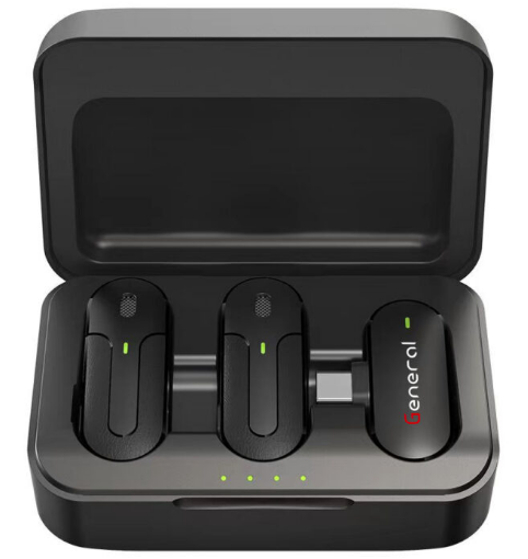 The General GM5 Type-C version is a wireless lavalier microphone system tailored for Android smartphones and tablets. Featuring a Type-C receiver, dual clip-on microphones, and a stylish charging case — this set delivers top-tier audio quality with no apps, no Bluetooth, and no complications.