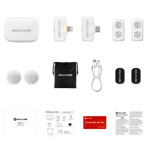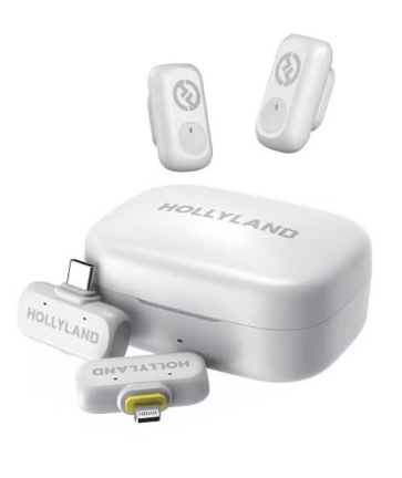 The Hollyland LARK A1 Combo is a dual-channel, digital wireless microphone system engineered for effortless smartphone connectivity and plug-and-play operation—ideal for streaming, vlogging, podcasting, and video production with two people speaking at the same time. The system includes two ultracompact, clip-on transmitters with built-in omnidirectional microphones for discreet, high-quality recording, and Lightning and USB-C plug-in receivers for direct use with iOS and Android devices, two furry windscreens for outdoor shoots, and a convenient charging case.