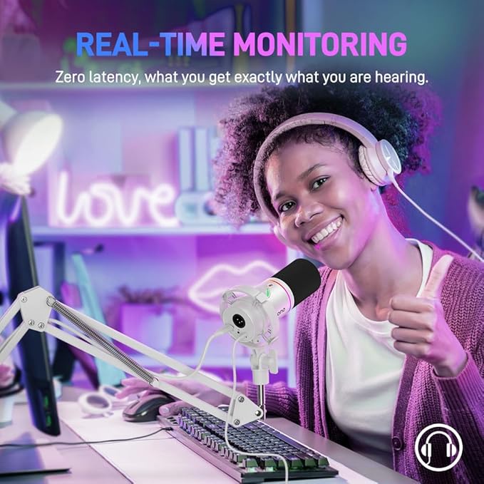 Easy Plug and Play Installation - You have everything under control, just connect the microphone to your computer via USB and start recording immediately. No additional drivers or complicated configuration is required. The podcast microphone has a 2 in 1 smart button to adjust microphone amplification and headphone volume, one-click mute button with LED display helps you immediately mute the microphone and monitor in real time the output of the 3.5mm headphone jack monitor as the recording professionals want