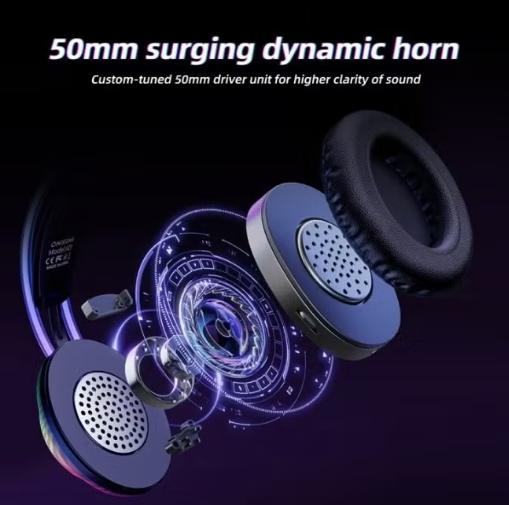 Powerful 50mm Audio Drivers: Dual neodymium drivers provide rich stereo sound with strong bass and reduced distortion for gaming, movies, and music.