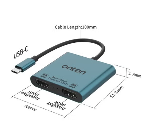 onten 9175B USB C to Dual HDMI adpater 4K@60HZ. USB Type c to Dual Monitor MST Converter.Compatible with thunderbolt3/4 MacBook Pro/Air, iPad Pro and More