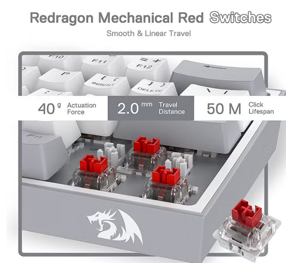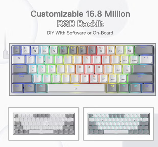 60% Mechanical Keyboard, Red Key Switches, Hot-Swappable, Detachable Type-C Cable, Pro Software Customizable RGB, Full Rollover 61-Keys, White/Gray | K617-RGB