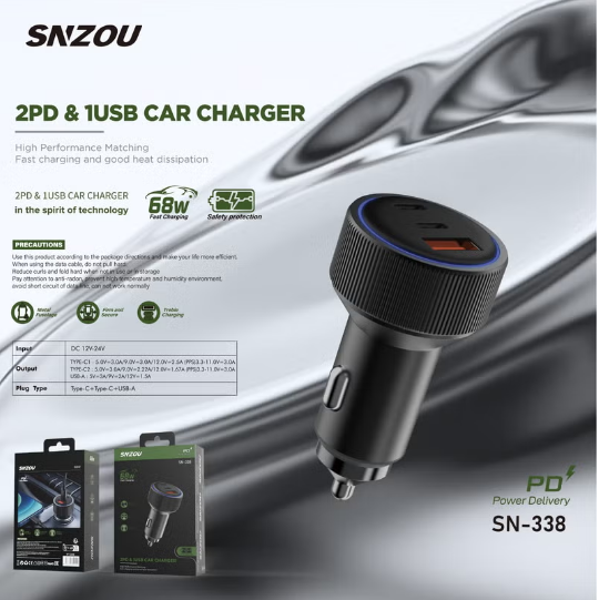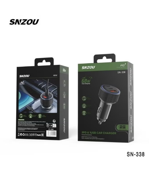 SNZOU Car Charger SN-338 fastcharging 68w 2 PD&1USB