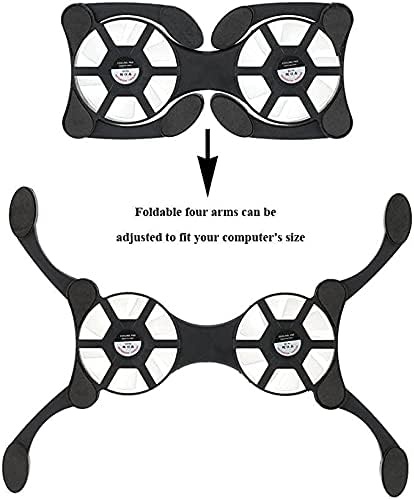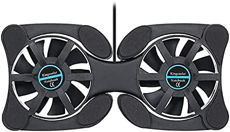 Portable folding laptop cooling pad with two powerful 70M fans that provide a large air volume and use integrated twin turbine technology for efficient cooling.