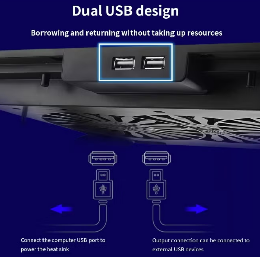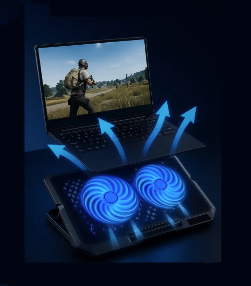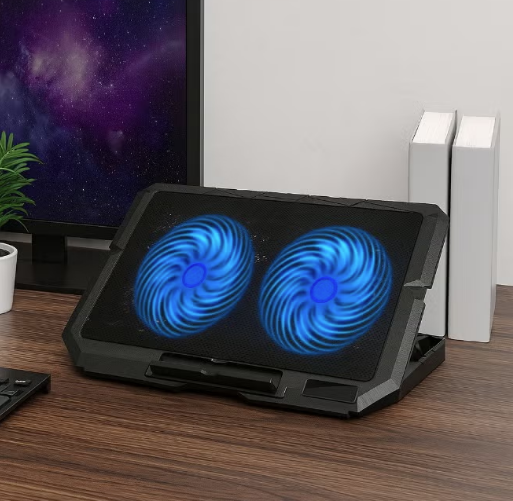 UC-502 ultra-thin laptop cooler with dual 14cm fans – LED lighting – dual USB ports – compatible with up to 17-inch laptops
